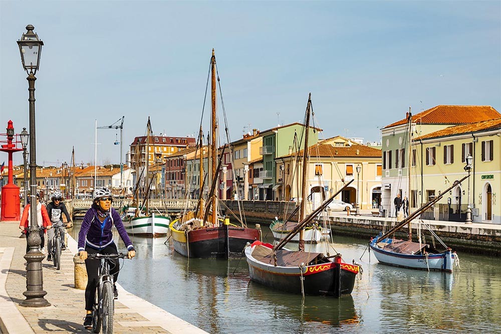 Einfache Routen, auf denen Sie einen köstlichen Cappuccino, ein Glas Wein oder eine lokale Focaccia mit Salami genießen können. Bewundern Sie die Landschaften und die Natur unserer Region und des Hinterlandes. Sie besuchen Cesenatico mit dem Kanal von Leonardo Da Vinci, die Salzseen in Cervia, Bertinoro, eine charmante Bergstadt, die für ihren guten Wein und ihre Gastfreundschaft ausgezeichnet wurde. Der Naturpark San Bartolo mit Strassen mit Blick auf das Meer und atemberaubenden Landschaften.