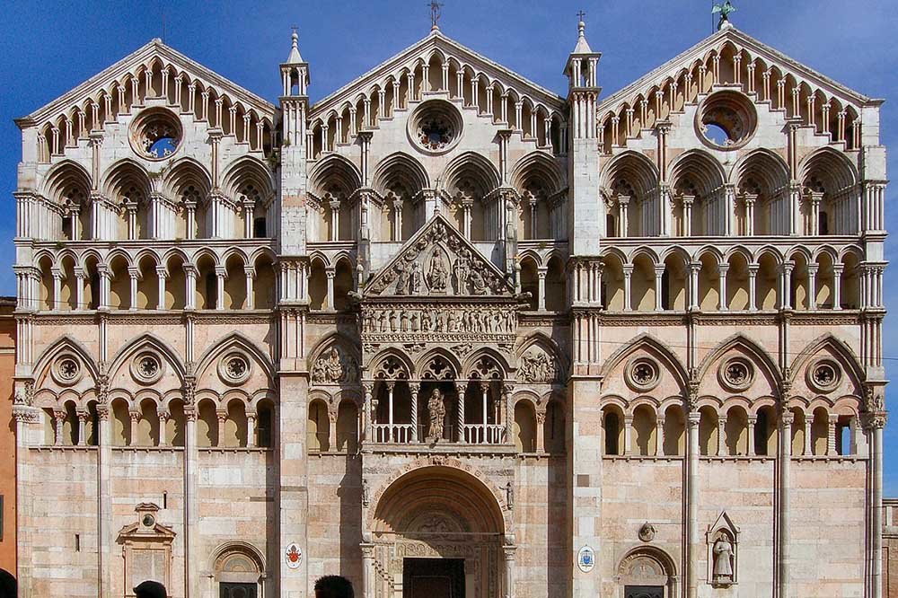 Ferrara, die Renaissance-Fürsten haben die Stadt geschmückt mit Palästen, Kirchen und Schlösser, bemerkenswert der Dom mit der feindekorierten Fassade und dem Dia-mantenpalast. Weiterfahrt nach Comacchio wo wir die Natur des Po- Deltas entdecken. Abends Aperitif auf der Panoramaterrasse.