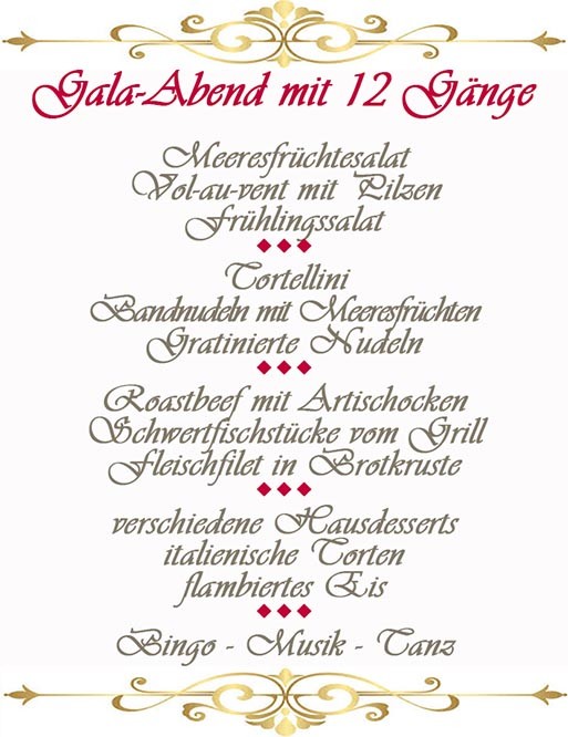 - ✓ Abschiedsabend - Gala mit 12 Gängen