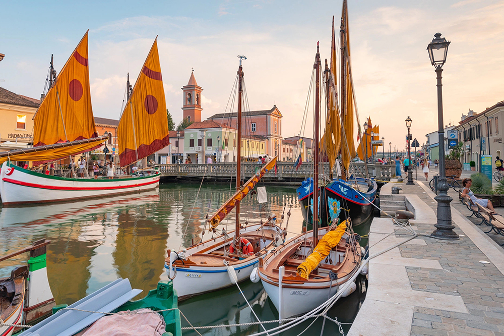 Ravenna, bekannt für seine Geschichte und antiken Kunstschätze. Sie werden beim Rundgang eine einzigartige Stadt entdecken Sant Apollinare, Mosaike, Grabmal des Königs Theoderich. Nachmittags ein Bummel durch die Gassen Cesenaticos mit seiner wunderschönen Altstadt, mit Leonardo da Vincis Hafen von 1314. Vor dem Abendessen Aperitif bei Sonnenuntergang auf der Panoramaterrasse des Hotels.